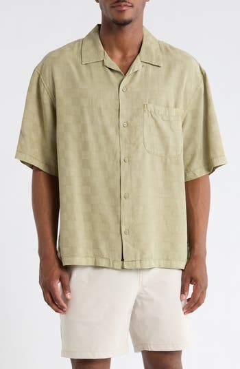 Tonal checks and a casual notched collar bring laid-back appeal to this breathable camp shirt.