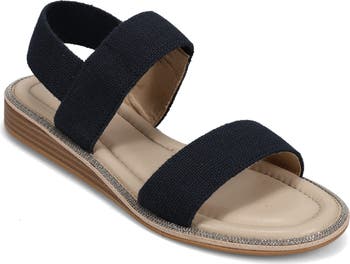 Stretchy straps perfect the fit of this streamlined wedge sandal grounded by a comfort-cushioned footbed.