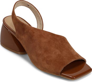 Contemporary with a squared-off toe and asymmetrical heel, this d'Orsay sandal is sure to be a favorite in your work or weekend lineup.