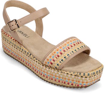 Rainbow-hued raffia fibers bring playful pops of color to every step in this resort-ready wedge sandal cushioned with a stride-cradling footbed.