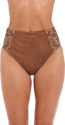 Intricate topstitching and brass studs evoke a western vibe on these bikini bottoms designed with a smooth-shaping high waist that gives you extra confidence by the water.