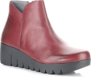 Style and comfort are underfoot in this leather bootie set atop a walkable wedge, rubber sawtooth sole and cushioned footbed.