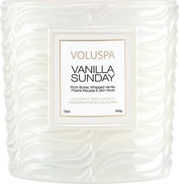 What it is: A single wick candle housed in a premium sculpted, swirly white glass with a tapered silhouette and packaged in a decorative box.