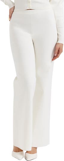 A mid rise and cotton-blend fabrication add modern comfort to pull-on pants designed with flared legs for trendsetting appeal.
