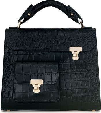 Indulge in a timeless expression of elegance with this exquisite accessory, designed for the sophisticated woman. Crafted from luxurious, textured crocodile embossed full grain Italian leather, it embodies both strength and style. The refined gold hardware adds a touch of opulence, while the spacious interior, lined with warm beige microfiber, ensures practicality without compromising luxury. An artfully designed exterior pocket not only enhances its aesthetic appeal but also serves as a functional element, making it a perfect companion for both formal and casual occasions. This piece is a celebration of artisanal craftsmanship and sophisticated design. Made in Italy