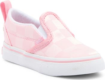 An iconic skate sneaker rolls down to a sporty kid size with a hidden easy-on flap preserving the slip-on look and a plush interior providing lots of comfort. The wide, flat base helps promote balance and confident early steps for beginning walkers.