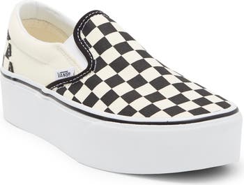 The classic checkerboard slip-on sneaker gets a trend-right lift from an optic-white platform cupsole set on a signature waffle tread.
