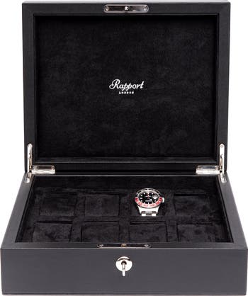 There's no better place to store your treasured watch collection than a Rapport watch box. The Vantage is a modern classic watch box that can hold up to eight watches. Each watch has its own separate cushion which can be adjusted to fit the size of your watch. We've sourced the highest quality smooth leather and suede to handcraft this watch box.