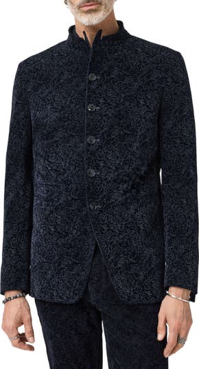 Tap into a throwback mod aesthetic in this slim-fitting paisley jacket topped with a peaked Mandarin collar.