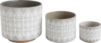 Various Round Stoneware Planters with Geometric Patterns, Set of 3