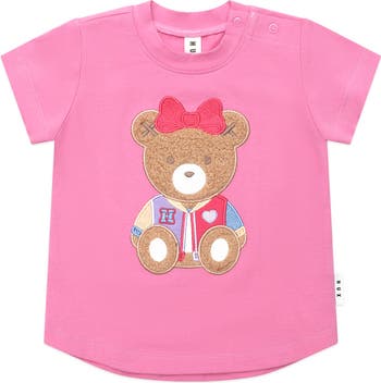 The perfect everyday tee, but with added fun. This round neck t-shirt is made from buttery-soft organic cotton in bold biolet and features a varsity Huxette embroidery. Baby sizes feature stainless steel shoulder snaps for quick changes.