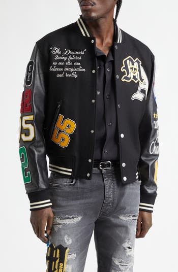 Varsity Patch Wool Blend & Leather Jacket