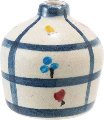 Add a touch of rustic artistry to any space with this Hand-Painted Terra-Cotta Vase, featuring delicate floral designs and a grid pattern rendered in a crackle glaze. Each piece is uniquely finished, making it a one-of-a-kind accent for Boho, Scandinavian, Contemporary, Farmhouse, and Country interiors. Whether used to hold dried botanicals or displayed as a sculptural element, its textured surface and multicolor palette evoke warmth and timeless charm. Measuring 3.5 inches round by 3.75 inches high, this vase is a small treasure with big personality.