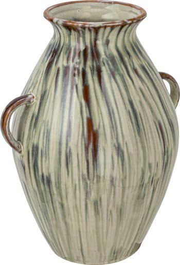 - This stunning vase showcases a hand painted design with a captivating blend of green, brown, and cream colors and reactive glaze that adds a touch of depth and uniqueness to each piece, making every vase a one-of-a-kind work of art