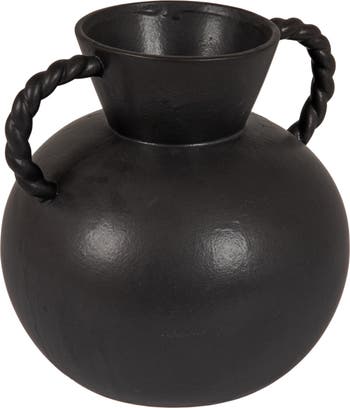 - This stunning vase with twisted handles is crafted from durable stoneware in beautiful matte black color.
