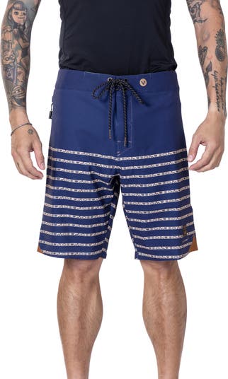 Soft, durable and ready for fun, these stripe-patterned board shorts made in part with recycled fibers feature lots of stretch to keep you moving comfortably in and out of the water. A secure side pocket holds small, water-friendly essentials where they're always easy to access.