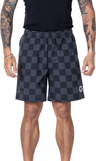Make a splash in stealth mode—these stretchy swim trunks flaunt a tonal checkerboard pattern that proves you’re always five moves ahead.