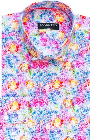 A printed shape-fit sport shirt made from satin and breathable cotton for easy movement.