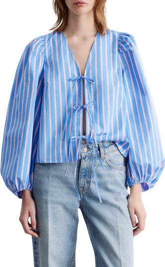 Voluminous sleeves play up the boxy silhouette of this striped cotton-poplin shirt secured with a trio of dainty ties for an extra dose of whimsy.