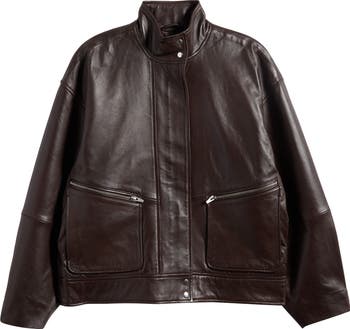 Supple leather brings rich texture to this cool-weather-essential jacket topped with a posh stand collar and popped with edgy zip pockets.
