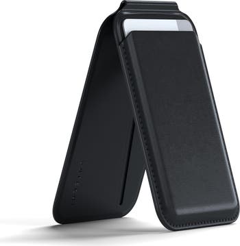 Imagine you’re heading out for the day—no bulky wallet, no cluttered pockets, just your Satechi Magnetic MagSafe Wallet attached securely to your iPhone. With a 900g magnetic grip, it snaps into place effortlessly, ensuring your credit cards, ID, or cash stay put. Whether you're tapping to pay at your favorite café or pulling out your ID on the go, this vegan-leather wallet offers the convenience you need without the bulk. Plus, with its adjustable stand, you can catch up on emails, stream videos, or hop on a quick video call—all without needing to hold your phone. Designed for everyday minimalism, this MagSafe card holder measures 4in x 2.5in x 0.35in (10.4cm x 6.5cm x 0.9cm) and weighs only 2.8 oz (80g), making it pocket-friendly yet durable. The front NFC pass-through lets you Tap to Pay without removing your card, and its scratch-resistant finish ensures it stays sleek over time. Compatible with MagSafe-supported Android phones and non-MagSafe devices using a Magnetic Wireless Sticker, it adapts to your setup. Note: Using more than 4 cards or a thick MagSafe case may reduce magnetic strength, and a large camera bumper could interfere with placement. More than just a MagSafe wallet, this accessory doubles as a multi-angle stand, adjusting up to 160° for the perfect viewing position in portrait or landscape mode. Whether you're watching a video, FaceTiming, or following a recipe, the sturdy hinge keeps your phone steady. Designed for heat dissipation, it won’t overheat, and for wireless charging, simply detach the wallet for an uninterrupted power boost. Crafted from premium vegan leather, it’s eco-friendly, easy to clean, and built to last. Upgrade your MagSafe essentials with the Satechi Magnetic Wallet Stand—the perfect travel accessory for your iPhone 16-12 series.