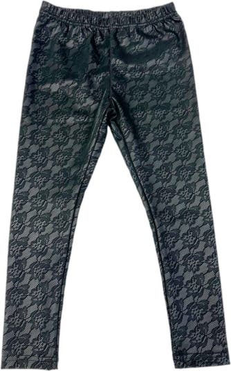 These Black Lace and Rose Print Vegan Leather Leggings have a shine and sparkle that girls love. Crafted to last, they are designed with vegan leather fabric and offer a comfortable fit. Perfect for a special outfit or everyday wear, they let her shine with style and confidence.