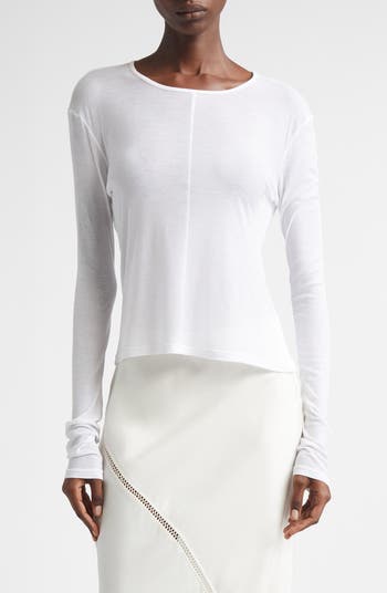 Featherweight cotton jersey brings ethereal drape to this drop-shoulder top fashioned with scrunched long sleeves.