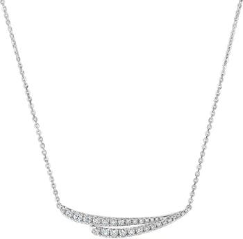 Slight curves and slim lines bring feather-like shape to this diamond-lined pendant necklace.