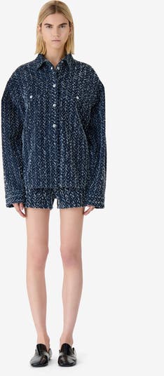A triumph of artisanal craftsmanship, the Velini Jacket transforms rugged denim into a sophisticated, tweed-like masterpiece through intricate, hand-punched pulls for a unique, tactile finish.