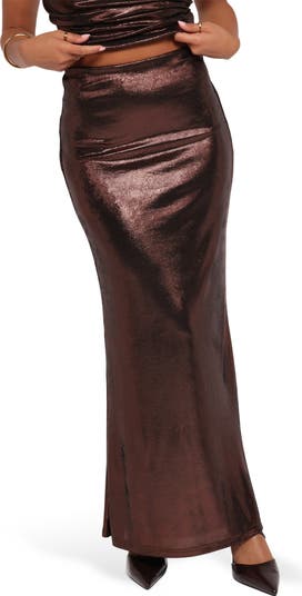 A shimmering metallic skirt cut in a figure-skimming silhouette will bring timeless elegance to any special occasion look you're putting together.