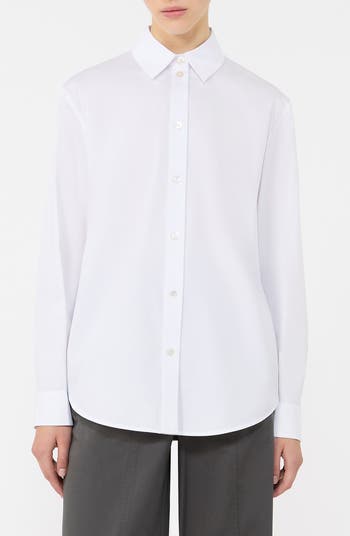 Every closet craves this polished shirt cut from crisp poplin and made in a tuckable longline silhouette.