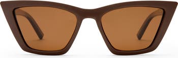 Sharp cat-eye frames with brown-hued, UV-protective lenses define these head-turning sunglasses infused with retro charm.