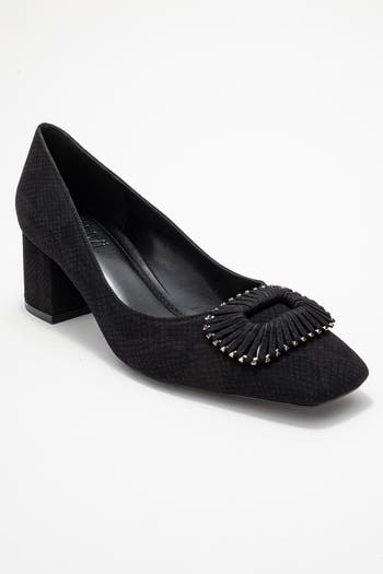 A refined block-heel design that blends classic lines with contemporary accents.