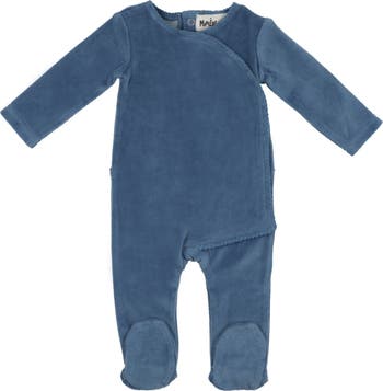 Plush velour surrounds baby with soft comfort in a side-wrap footie made from a cotton-rich blend.