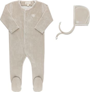 Velour Embroidered Bird & Butterfly Collection - Footie + Bonnet