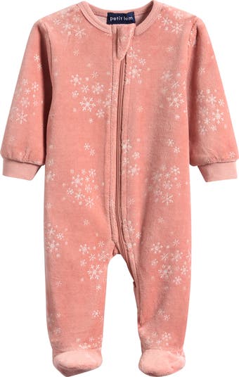 An adorable print covers these footed pajamas made from a cozy velour and secured with a two-way front zip to make changing a breeze.