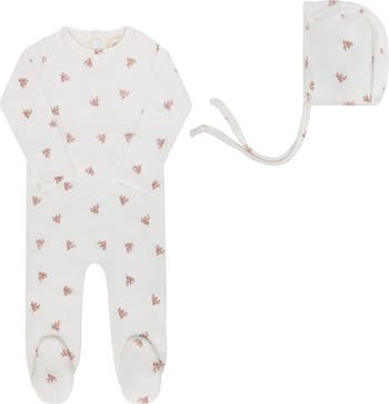 Cozy up your little one in our Velour Leaf Pattern Collection - Footie + Bonnet! This playful footie and bonnet set is made of soft velour and features a delicate leaf pattern print . Perfect for snuggles and photo ops. Don't miss out on the cuteness overload!