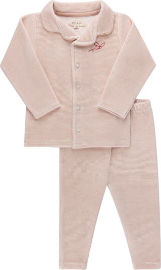 Indulge in our Velour Stripe Collection - Pajama set. This pajama set features a soft velour fabric offering gentle warmth and cozy comfort, perfect for your little ones.This adorable pajama set will keep your kids warm and comfy through the night!.