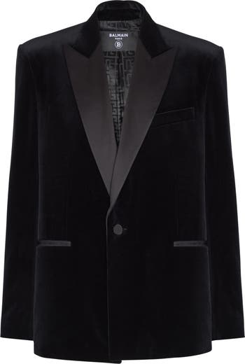 Velvet and satin 1-button blazer Italian tailored satin collar Long sleeves Shoulder pads Cuffs with covered buttons Satin welt side and breast pockets Covered-button fastening Monogram lining Vent at the back Fitted cut Model measures 189cm and wears a size 48 Main material: 100% cotton Made in France Item: GH1SE490MI33