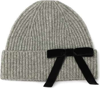 A velvet bow adds a charming touch to this ribbed beanie that will keep you looking stylish and staying warm every chilly day.
