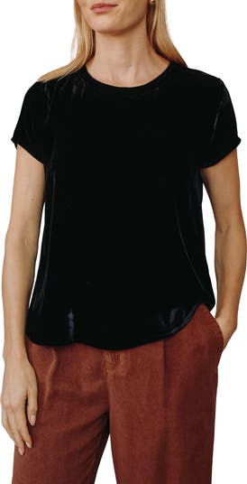 This silk-enriched velvet top with a boxy silhouette ups your work-to-weekend game.