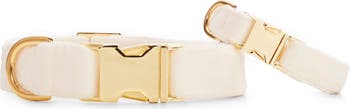 A soft velvet design with glinting hardware defines a plush and comfortable collar that adjusts to perfectly fit your pup.