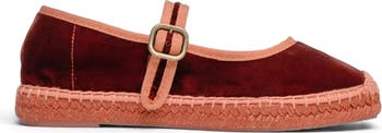 Contrasting trims highlight the luxe velvet upper of an espadrille-inspired mary jane lifted by a jute-wrapped platform and grounded by a grippy sole.
