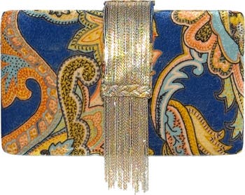 A velvet printed statement clutch finished with a shimmering fringe tassel—made to turn even the simplest look into a moment. Structured and sleek, it carries your essentials while the metallic fringe adds movement, light, and a little drama with every step. Dress it up for weddings and cocktail nights, or let it elevate denim and a crisp button-down.