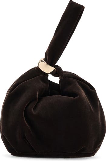 Plush velvet brings evening-ready polish to this softly gathered pouch bag designed with a pull-through goldtone loop handle for elegant handheld styling.