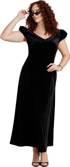 Bring quiet drama to your evening lineup with this -sleeve velvet maxi dress, featuring statement sleeves and a softly draped skirt. A deep neckline & back zip keep the silhouette sleek and refined.