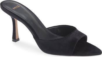Plush velvet adds festive drama to this pretty slide sandal lifted by a slender heel.