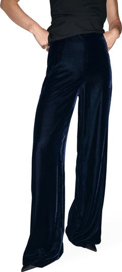 Plush velvet in a wide-leg cut brings party-ready style to these sleek pants constructed with a smooth waist.