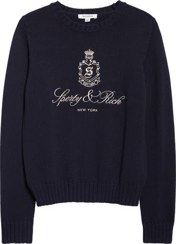 Invest in your own comfort with this cropped cotton sweater featuring regal embroidery that identifies you as sartorial royalty.