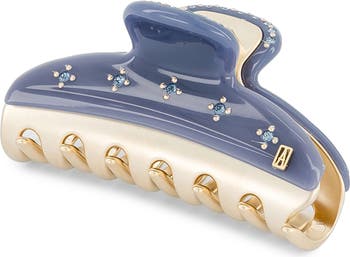 Floral-inspired crystals sweeten a colorful acetate clip that pulls back your tresses with ease.